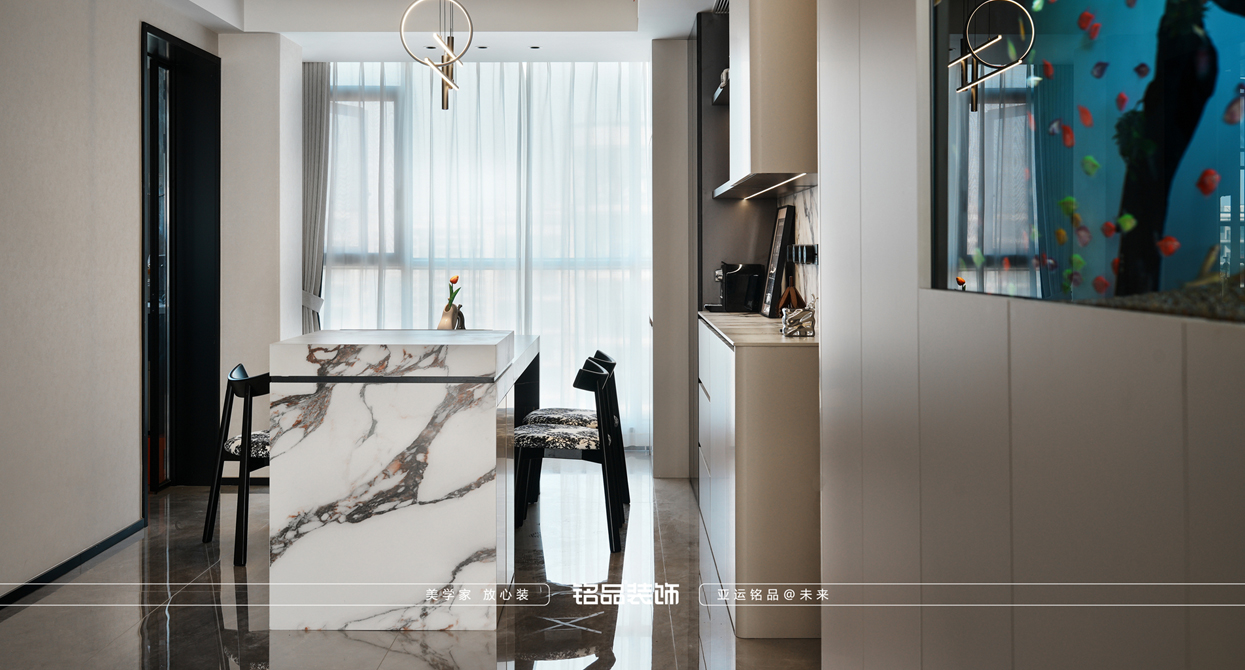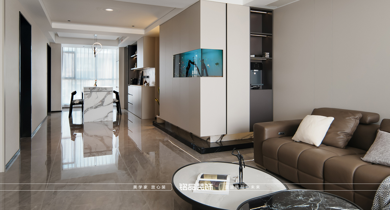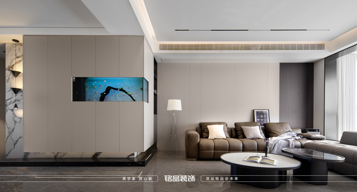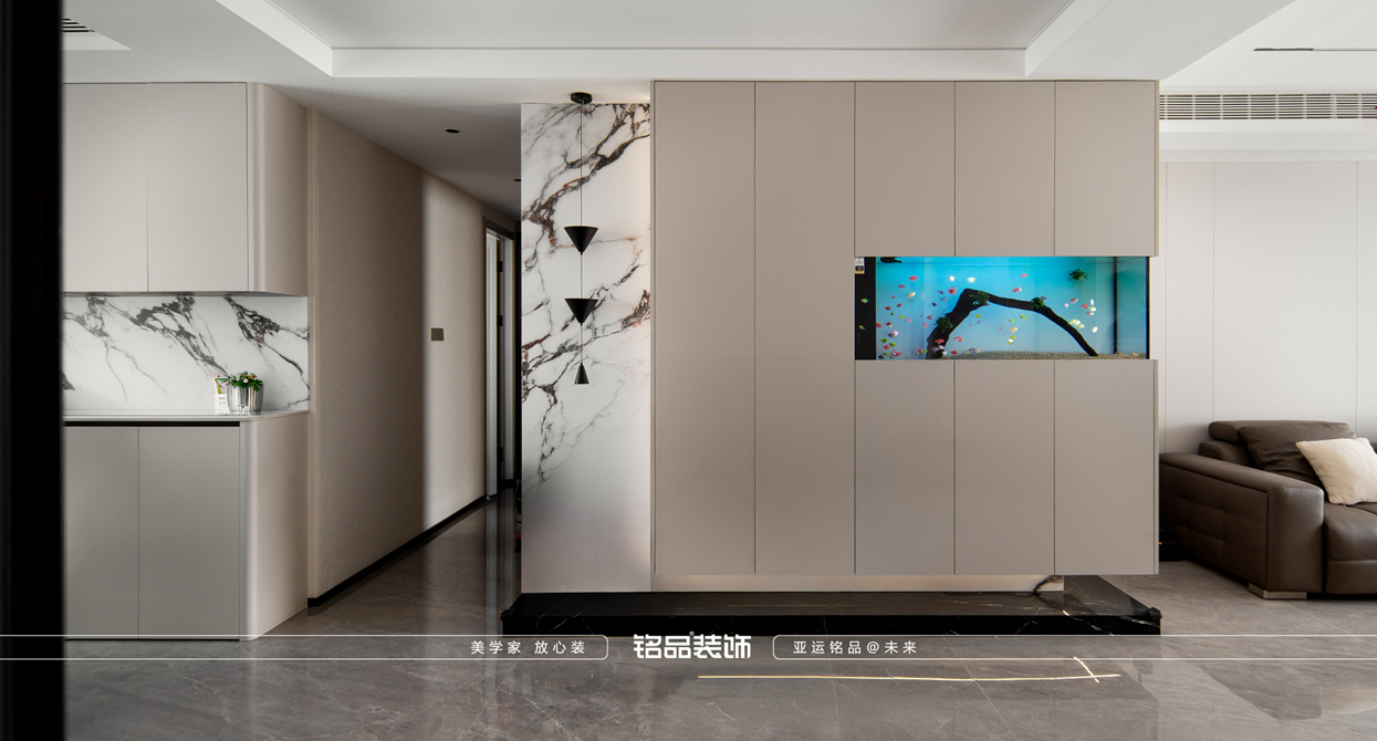 浅咖色系的意式风格优雅、简约却又精致内敛的品质感对细节工艺考究,胡桃木色与浅咖色、石材的拼接搭配让空间更富有艺术感,悬浮鱼缸营造出独特的视觉享受,巧妙融合意式风格总能为空间带来独特的品味和韵味,它不仅是生活空间的装饰,更是一种追求精致生活的态度让每一寸空间都散发着独特的浪漫与魅力